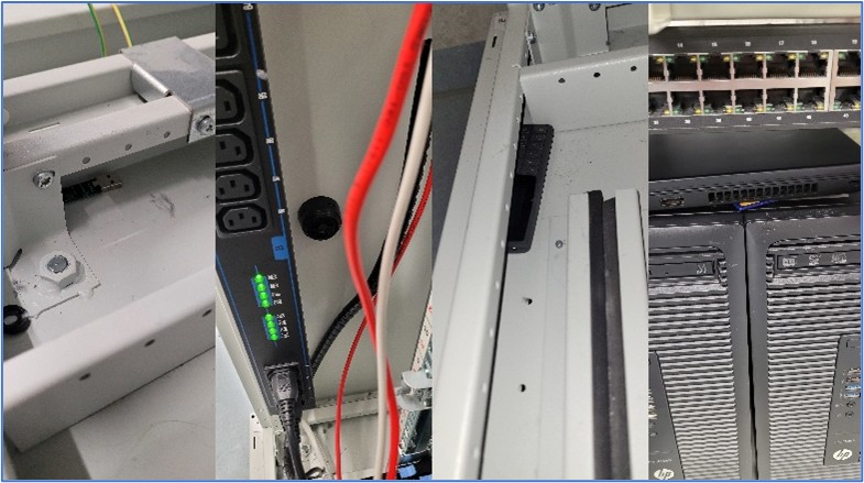 Versteckte Spionagekameras, Burner Phones, MicroSD-Karten und Abhörgeräte an verschiedenen Stellen der Datacenter-Infrastruktur – jeweils in unmittelbarer Nähe zu anderer digitaler Hardware platziert.