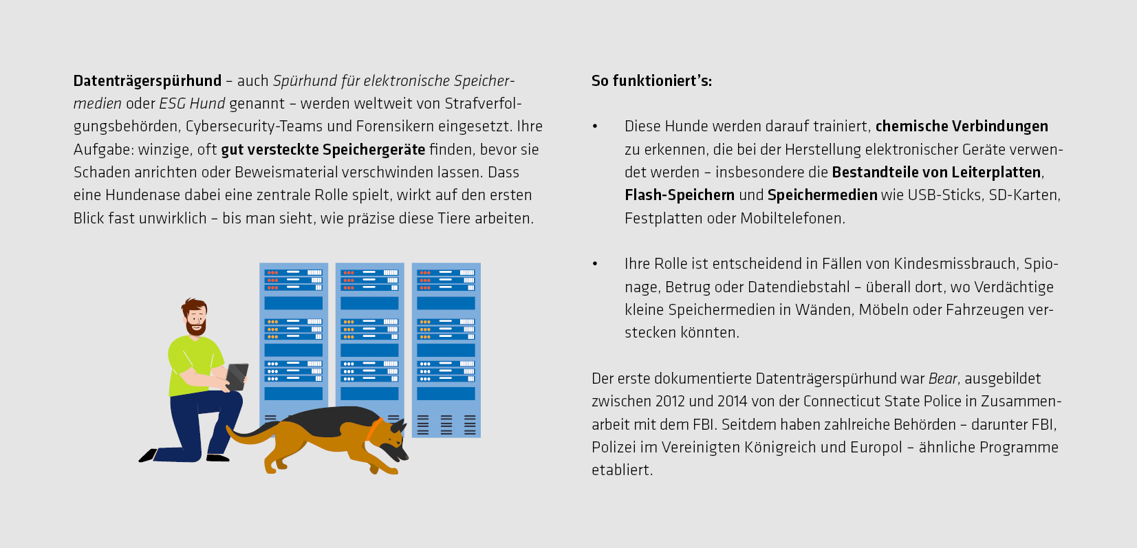 Dem Unsichtbaren auf der Fährte: Datenträgerspürhund Ace beweist ihr Können in einer Datacenter-Umgebung