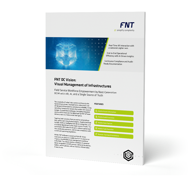 The joint solution from FNT and dcVue makes time-consuming, error-prone and expensive data centre audits more efficient, precise and transparent than ever thanks to automated processes, mobile integration and a digital twin.