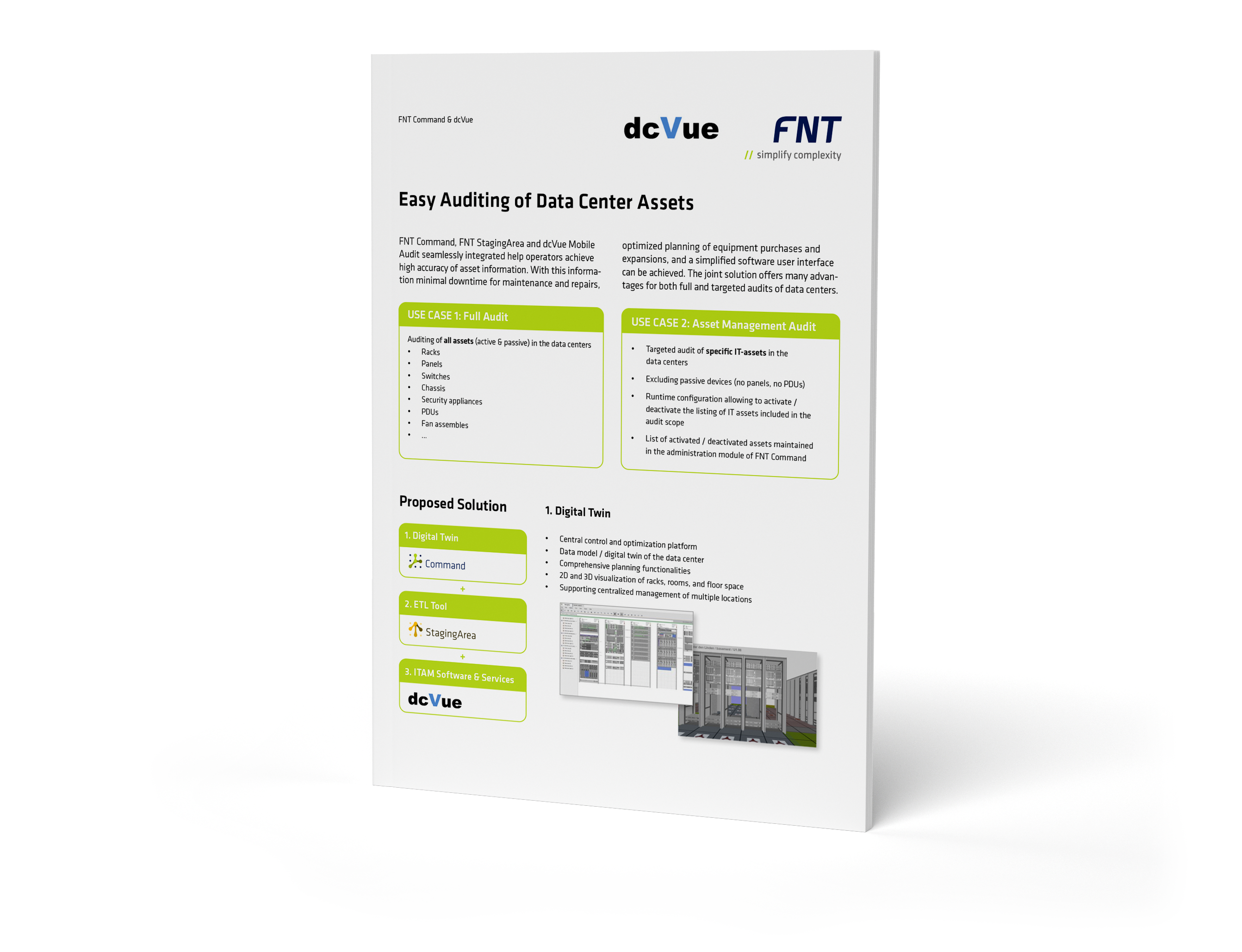 The joint solution from FNT and dcVue makes time-consuming, error-prone and expensive data centre audits more efficient, precise and transparent than ever thanks to automated processes, mobile integration and a digital twin.