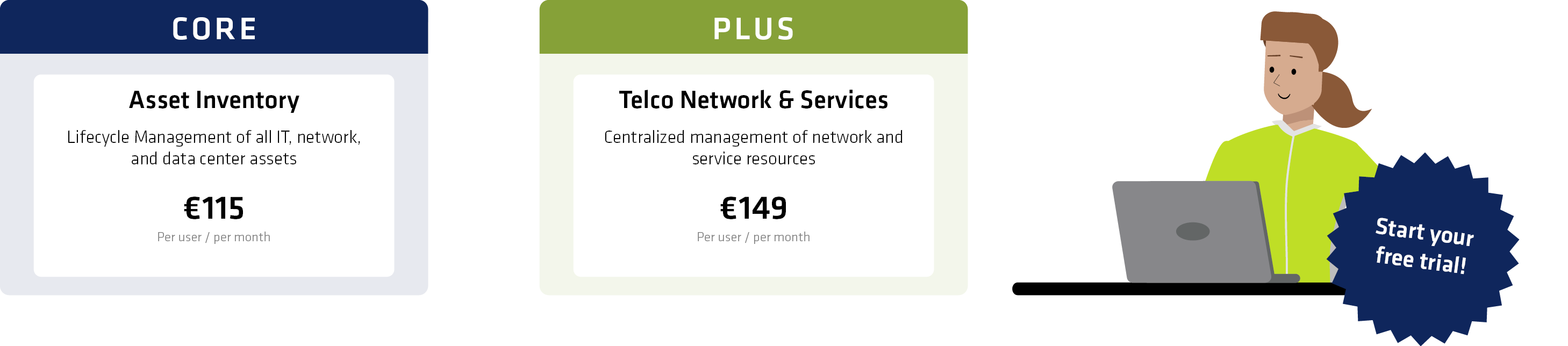 If you want to centrally document network and service resources, gain end-to-end transparency across your telecommunications infrastructure, and efficiently support planning, operations, and change processes, our Asset Inventory and Telco Network & Services packages are the right choice.