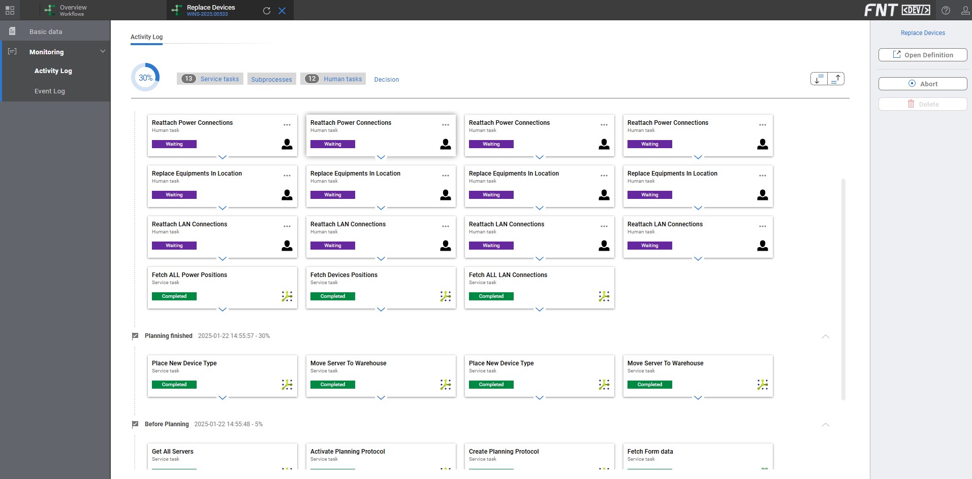 Die FNT Workflows-Komponente innerhalb von FNT ProcessCenter ist ebenfalls direkt in die FNT Command Platform integriert und ermöglicht, IT- und TK-Infrastrukturen über Workflows flexibel zu verwalten und Changes zu steuern.